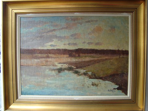 Gammel auktionsnummer og katalogtekst på blindramme.