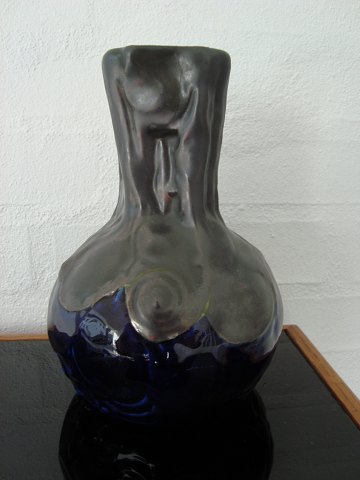 Jugend Royal Bleu vase med tin lustreglasur i top.