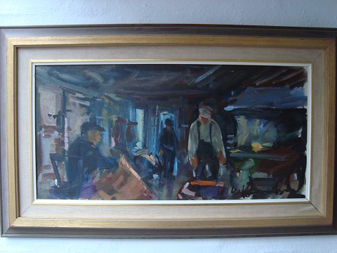 Maleri "Interiør fra en smedje" af Uno Hubert Karlsson.