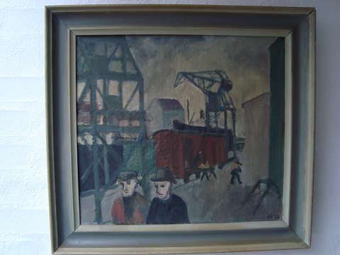 Maleri - "Havnen" - Gunnar Sørensen 1953.