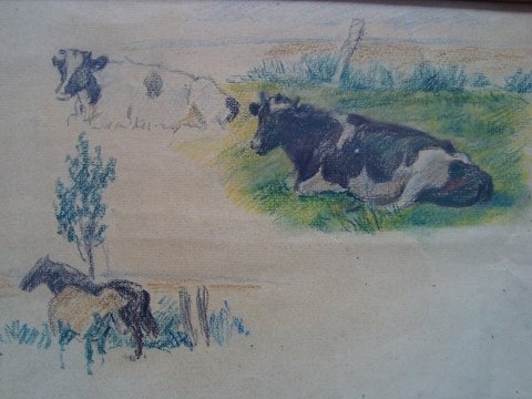 "Skiter af køer og heste på mark" 1944