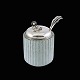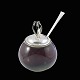 Saxbo. Krukke i stentøj med låg og ske i sølv.