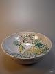 Ipsens Enke. Skål med fugl og glasur i orangegrønne nuancer.
