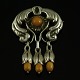 Danish Art Nouveau Silver Brooch with Amber - Bernhard Hertz.