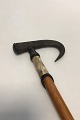 Walking stick of black lacquered wood with silver handle designed as a horseshoe