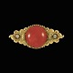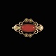 Evald Nielsen. Art Nouveau 14k Gold Brooch with Coral.