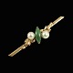 Gerson Davidsen - Copenhagen. 14k Gold Brooch with Jade and Pearls.