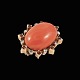 A. N. Dragsted - Copenhagen. 14k Gold Brooch with Coral and Diamonds.