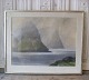 Edith Dueholm Jessen, oliekridt på papir, klippekyst fra Færøerne