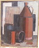 Maleri af Peder Brøndum Sørensen - Opstilling med flasker mv. ved vindue 1958.