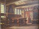 Maleri af Peder Brøndum Sørensen - Mand i grønt i interiør 1959.