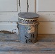Gammel fransk zink dåse med teksten "Le chat gourmet"