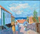 Nielsen, Svend (1908 - 1993) Denmark: Scene from Rønne with people.