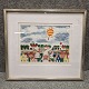 Farve litografi af Knud Erik Færgemann 1985 - Vej gennem landsby med personer.