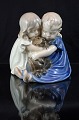 Gamle porcelænsfigurer, dreng med hund og pige med kat (solgt).