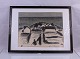 Træsnit af Poul Sørensen - Fiskerhuse 1972.