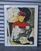 Farvelitografi af Svend Engelund - Pige ved morgenbordet.