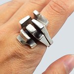 Georg Jensen; Stor sølvring med hæmatit #46E