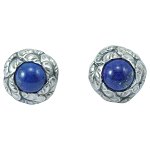 Georg Jensen; Ear ring/ear skrews of sterling silver set with lapis lazuli #108
