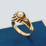 Bernhard Hertz; Ring i 14 kt. guld med emalje og perle