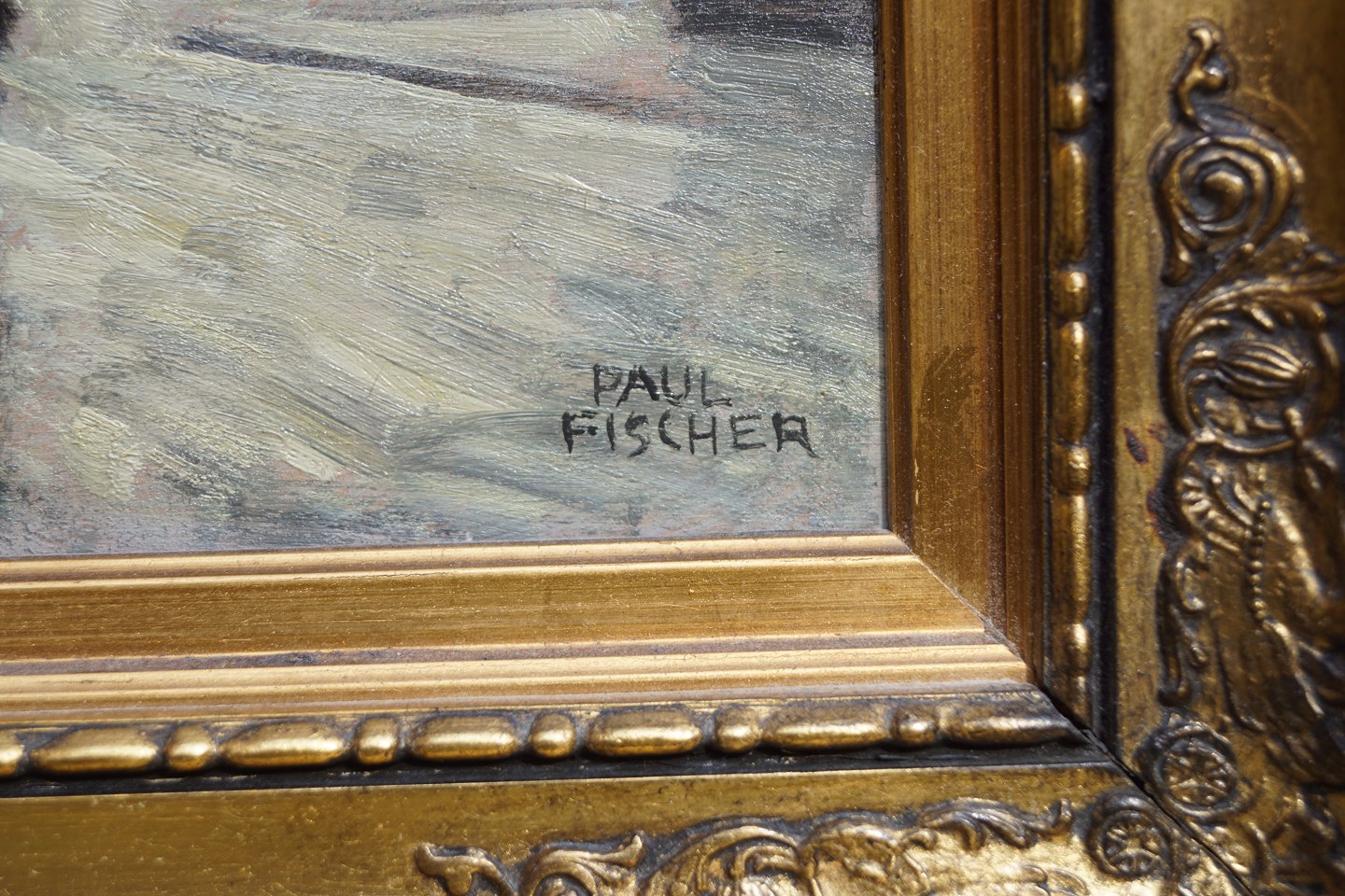 Paul Fischer; Maleri, En efterårsdag ved Holmens Kanal, olie på træ