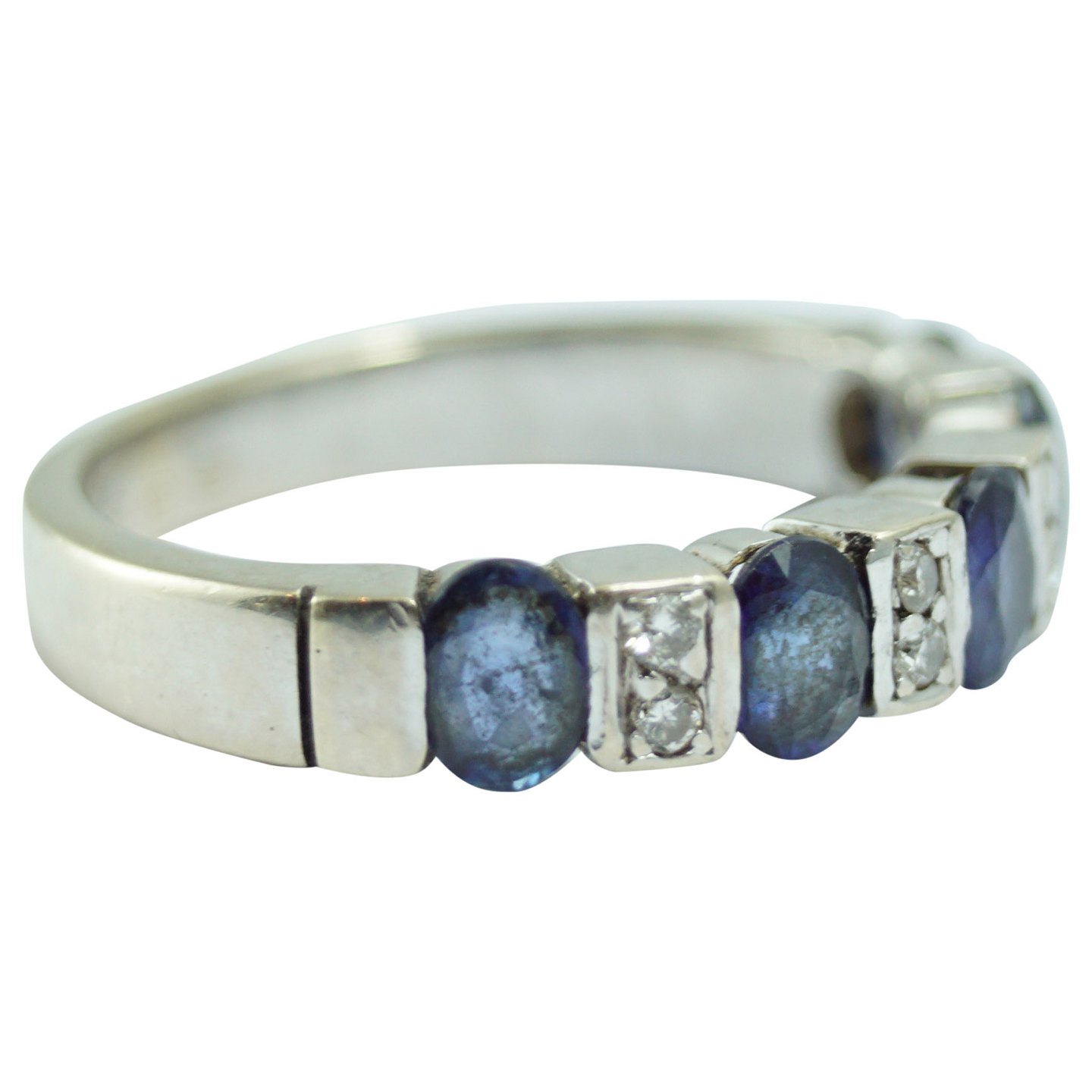 Alliancering af 14 kt. hvidguld med safirer og brillanter