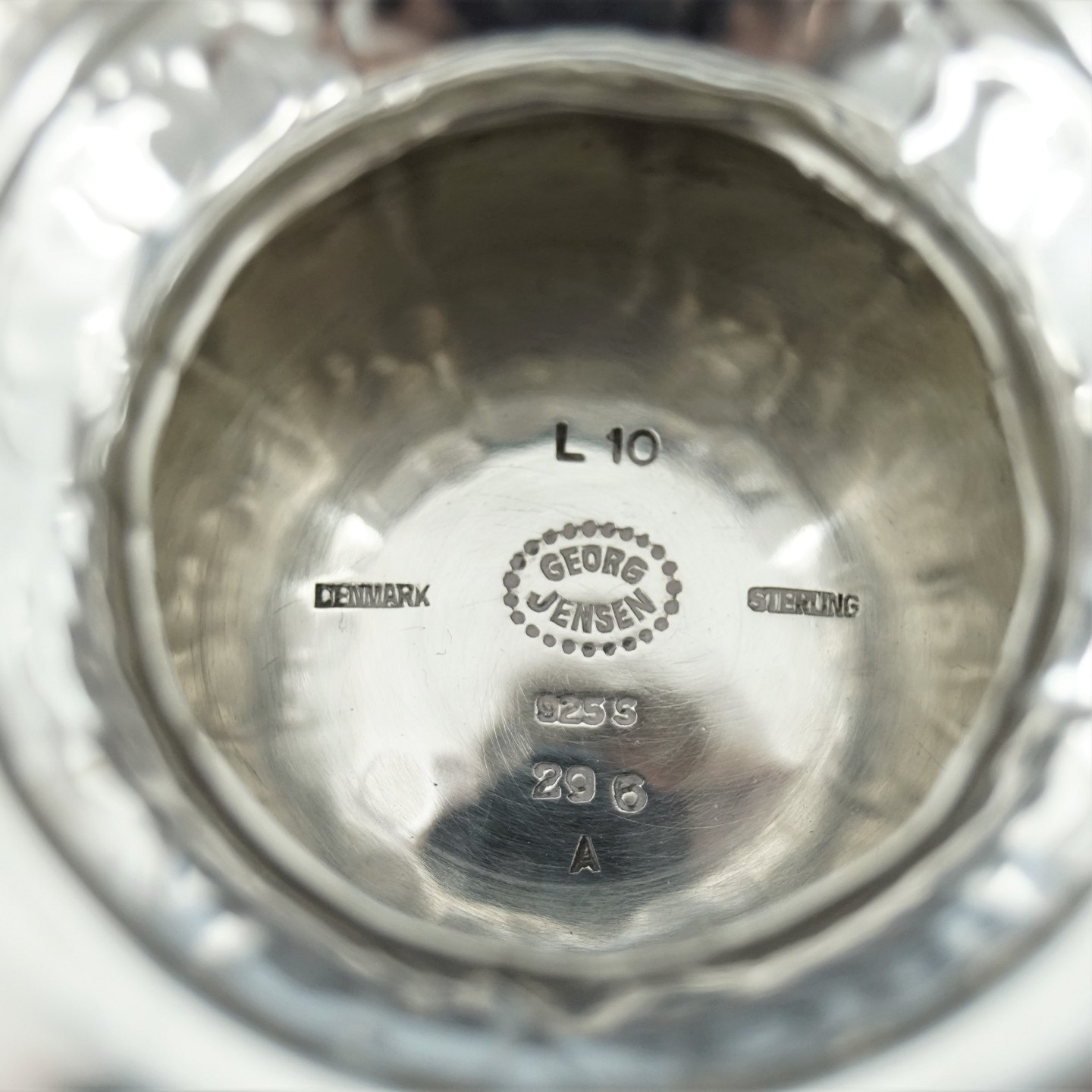 Stemplet "L 10 Denmark Georg Jensen Sterling 925 S 296 A".