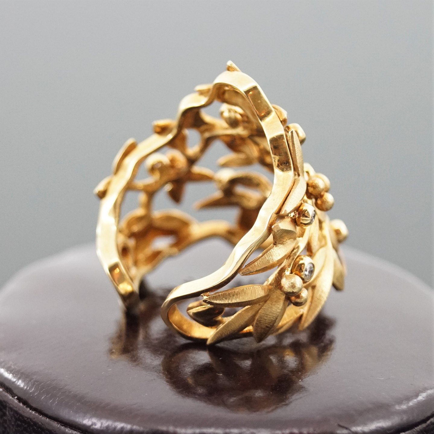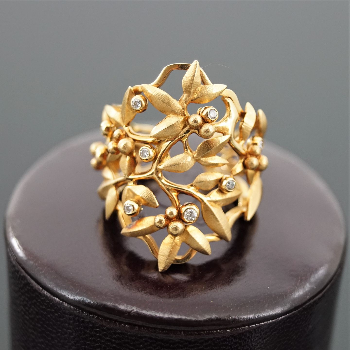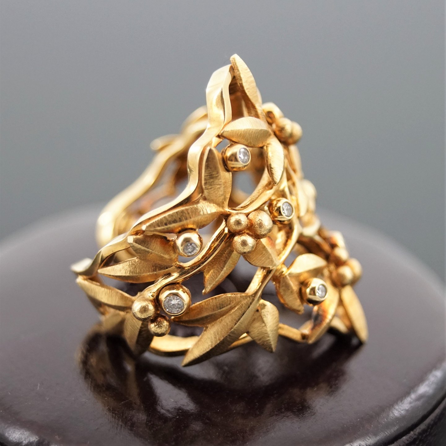 Charlotte Lynggaard for Ole Lynggaard; Stor spring ring af 18 kt. guld, prydet med ni diamanter.