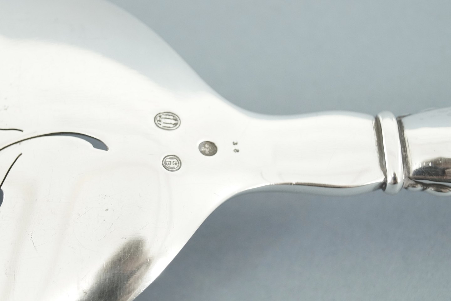 Georg Jensen; An early cake server set made in hallmarked silver, massive. L. 26,5 cm.