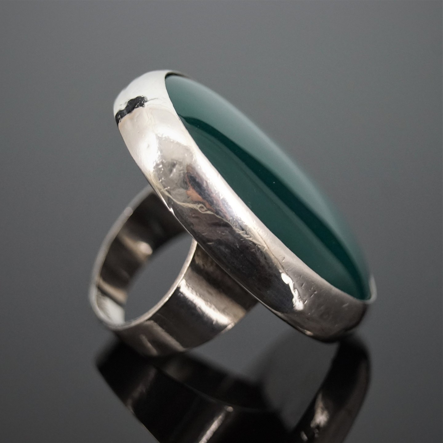 Stor ring af sterling sølv prydet med en oval grøn chrysopras.