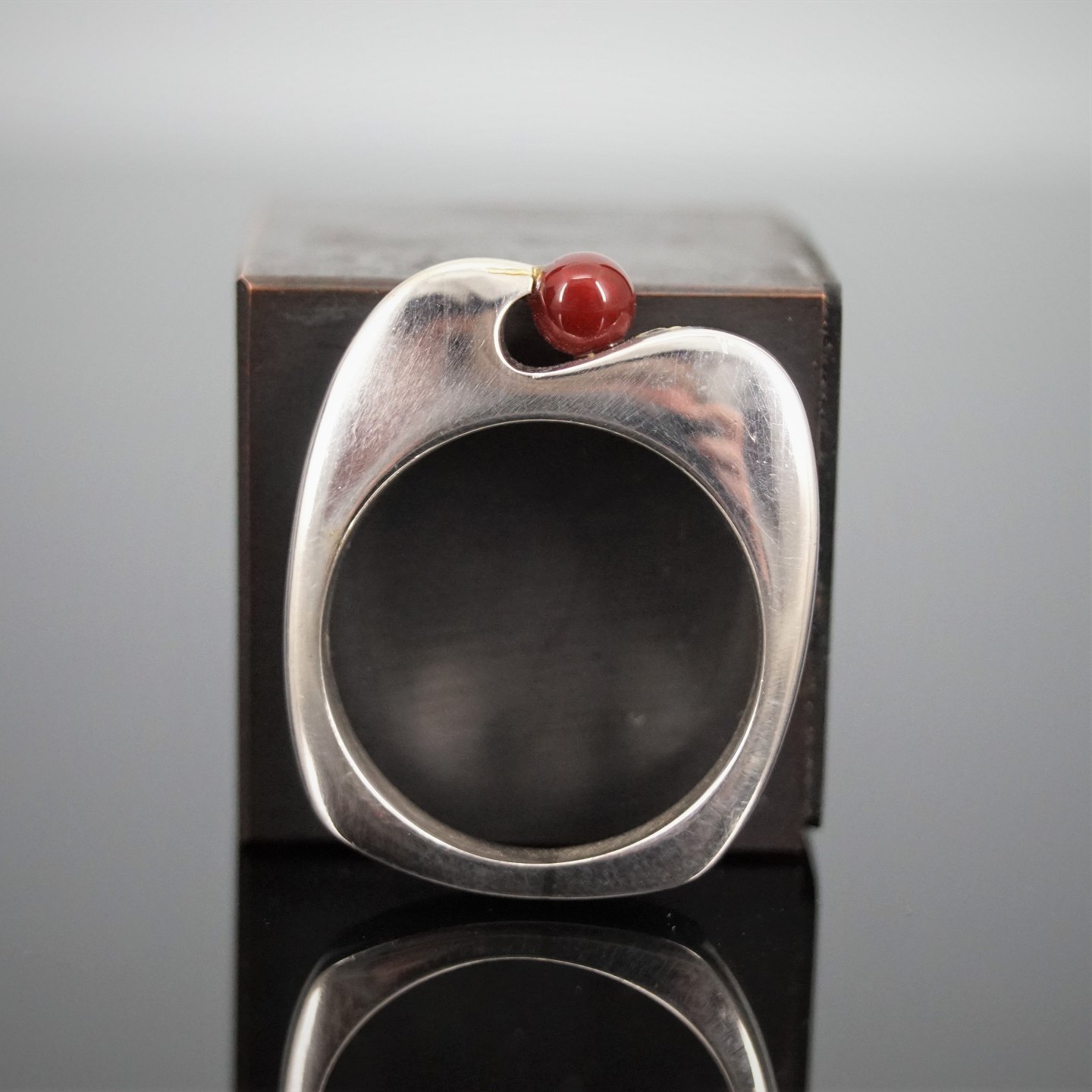 Anne Schiang for Georg Jensen; Ring af sterlingsølv prydet med carneol #241. Ring str. 56.