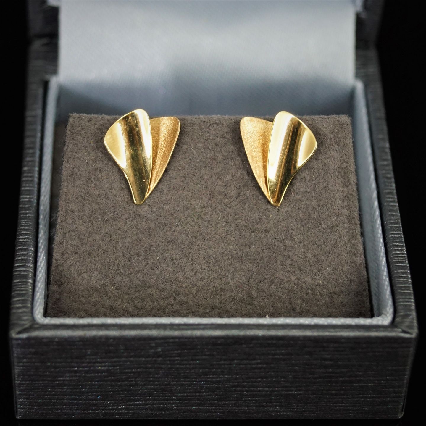 Aagaard; Ørestikker af 14 kt. guld, glat/satineret. 1,1 cm x 0,9 cm.