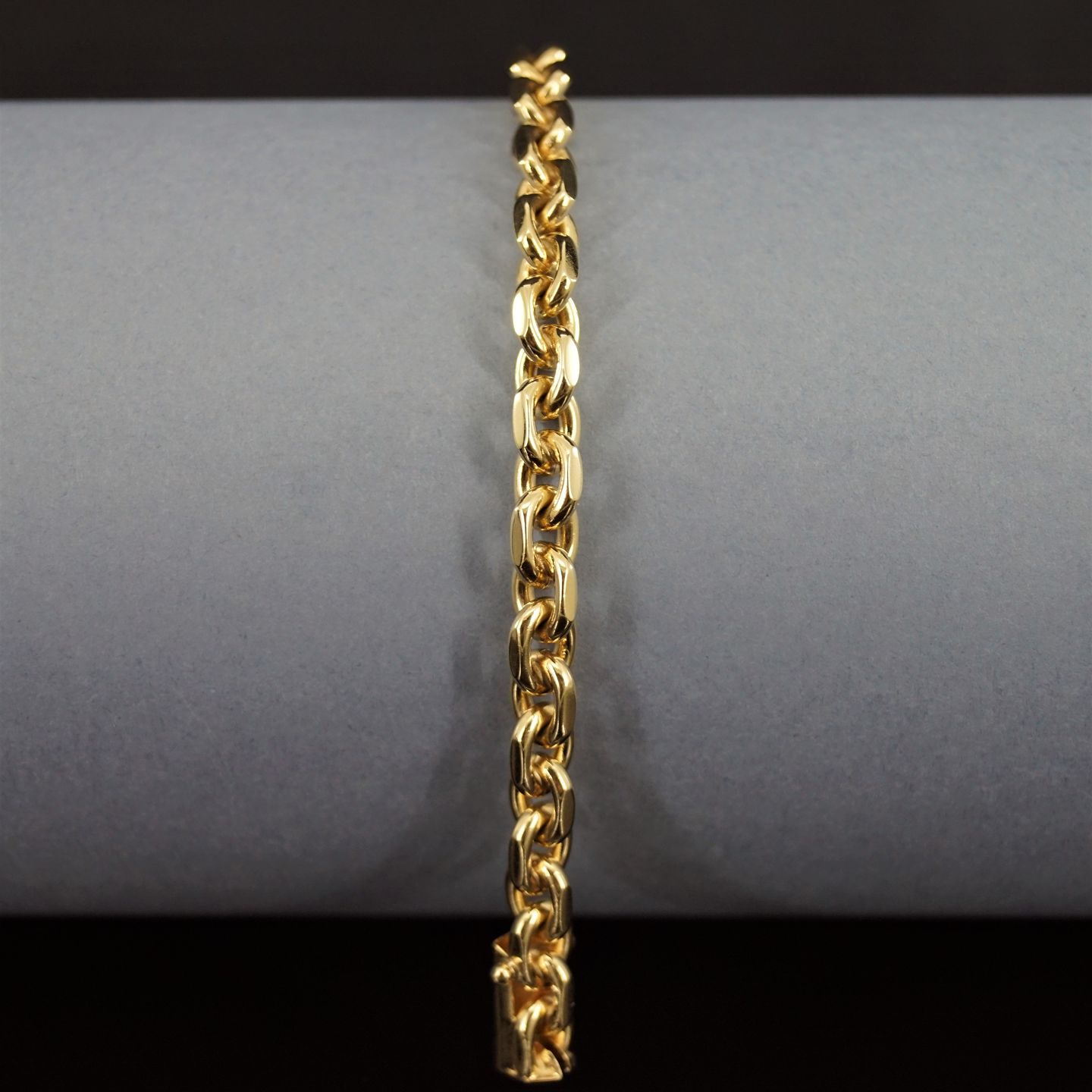 Anker facet armbånd af 14 kt. guld. Ankerarmbånd med facetslebne led. Monteret med kasselås samt to sikkerhedslåse.
