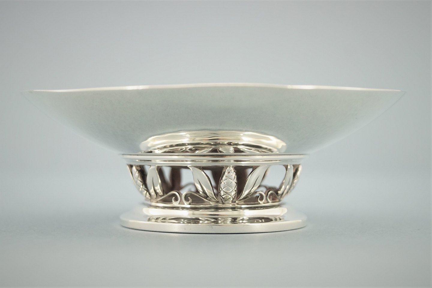 Ove Brobeck for Georg Jensen; Lille skål/opsats af sterlingsølv på fod #641A. Opsats med stiliserede blade. Design Ove Brobeck.