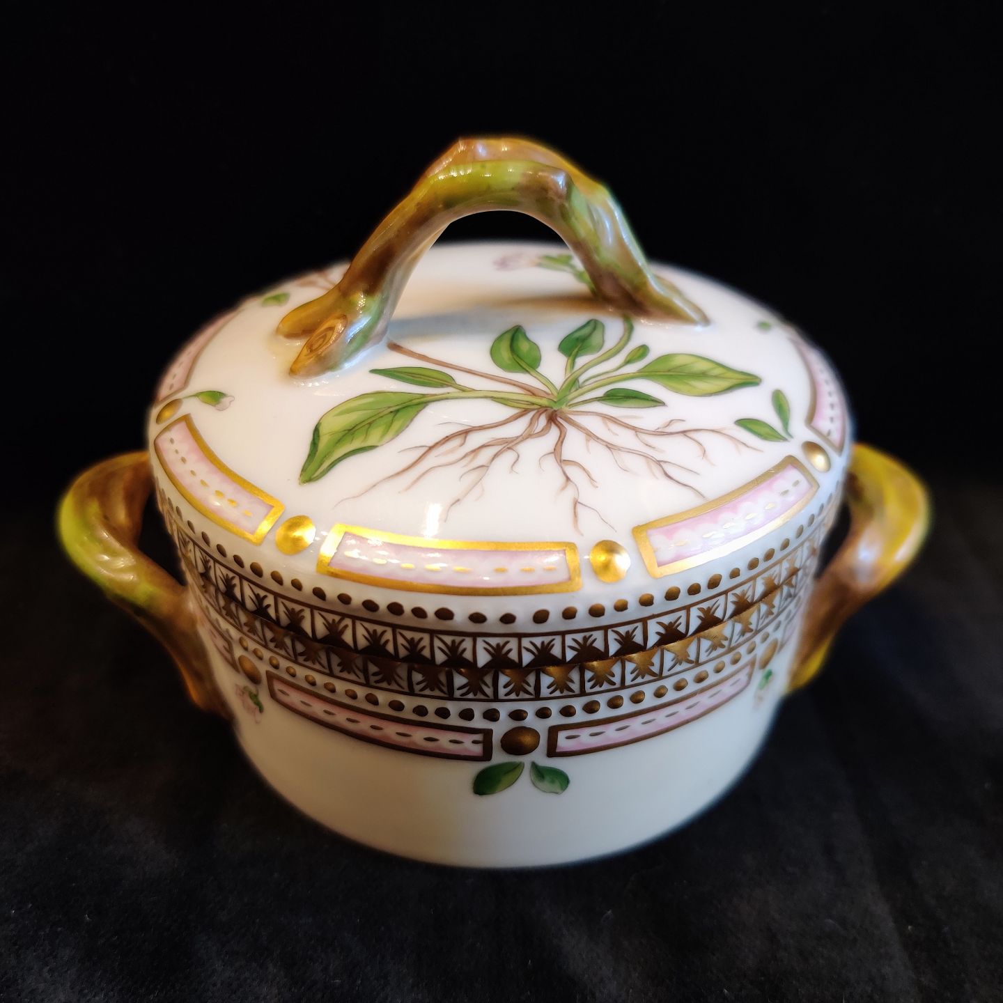 Royal Copenhagen, Flora Danica porcelæn; Sukkerskål med låg #3502.