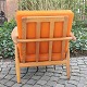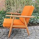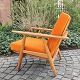 Hans J. Wegner; Par lænestole i eg med originalt orange betræk, model GE240. Stel af massivt egetræ. Cigarstolen er designet af Wegner. Produceret hos Getama.