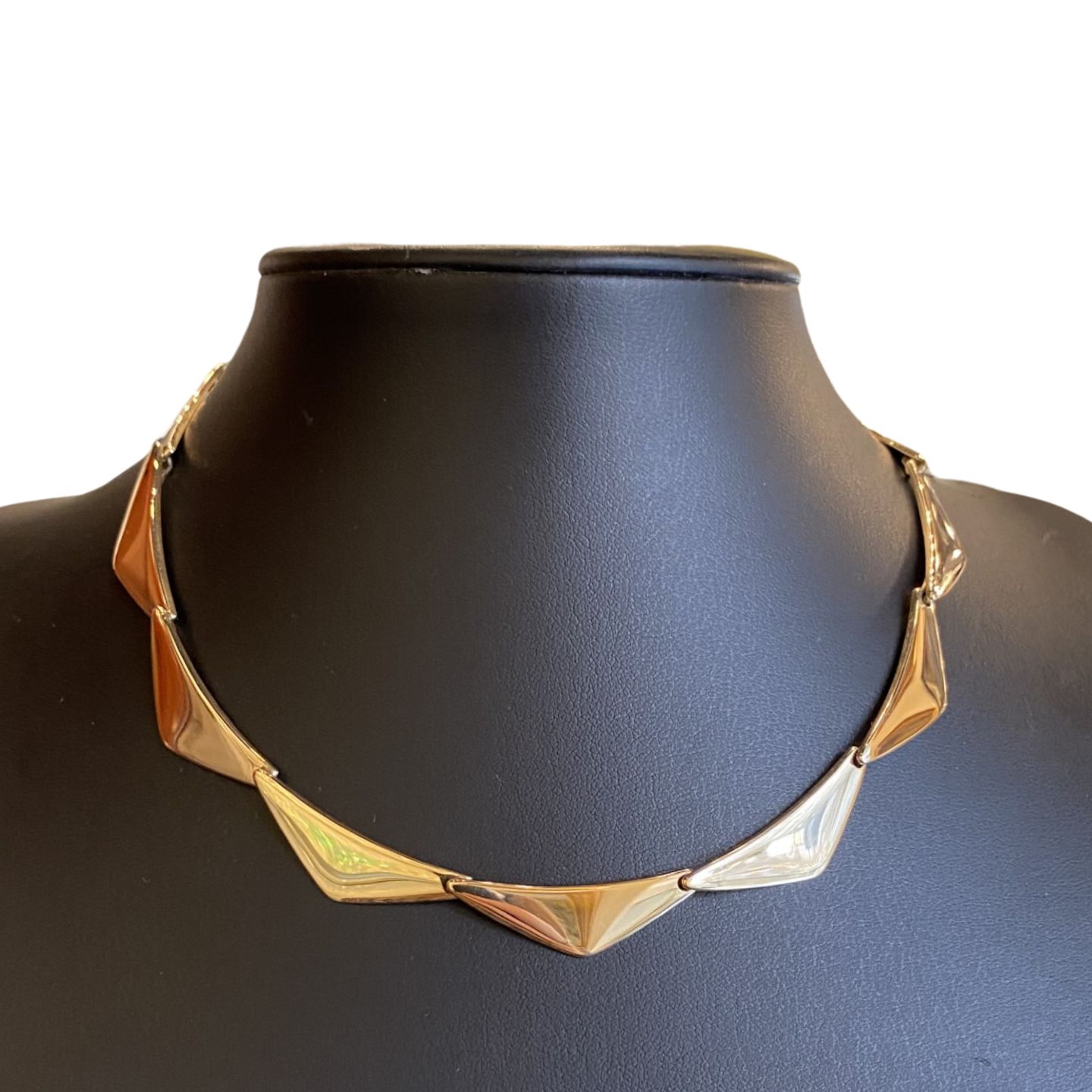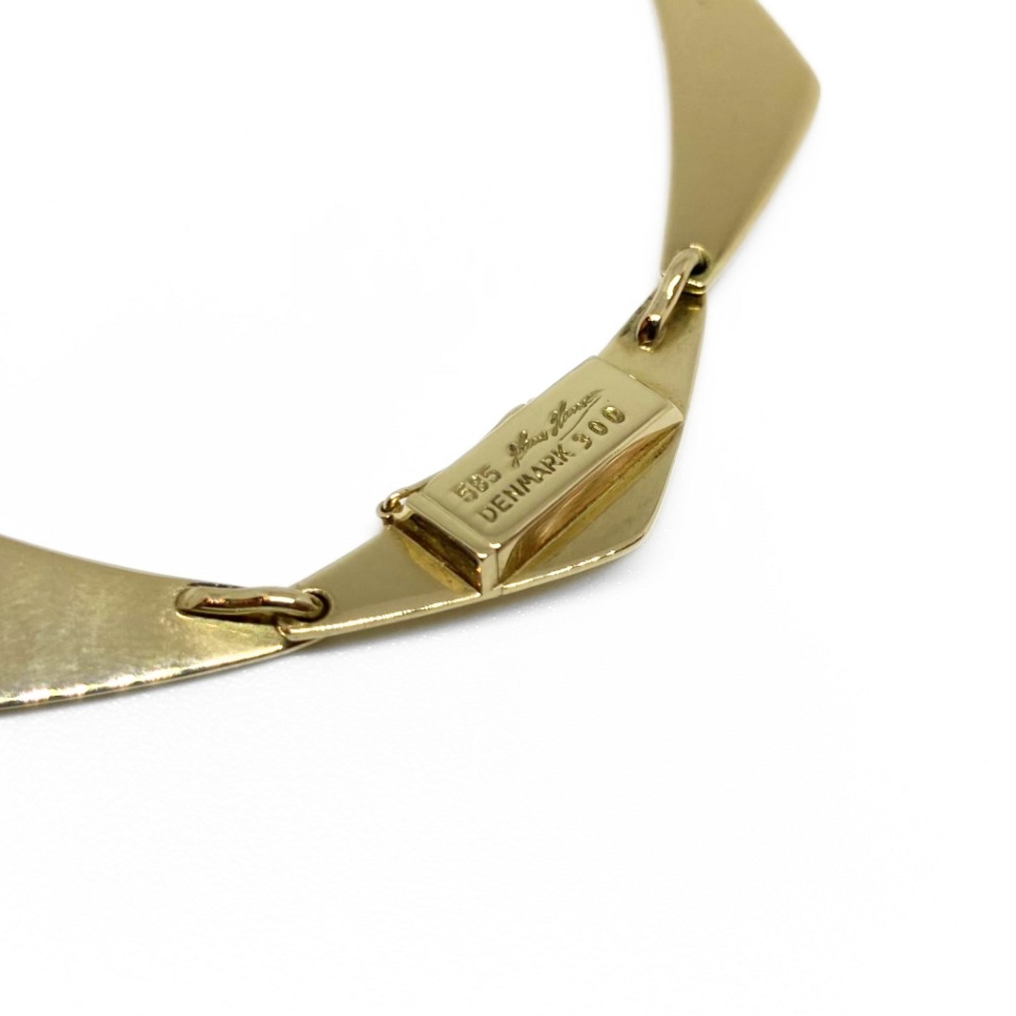 Peak halskæde af 14 kt. guld designet af Bent Gabrielsen for Hans Hansen. Dessin nr. 300. Med kasselås og sikkerhedslås.