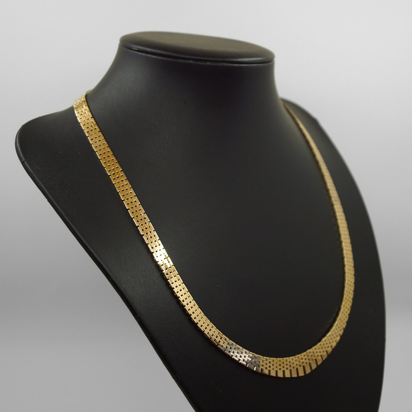 Murstenshalskæde med 7 rækker i forløb af 8 kt. guld, lavet hos Lilleriis Andersen. Monteret med kasselås samt to sikkerhedslåse.