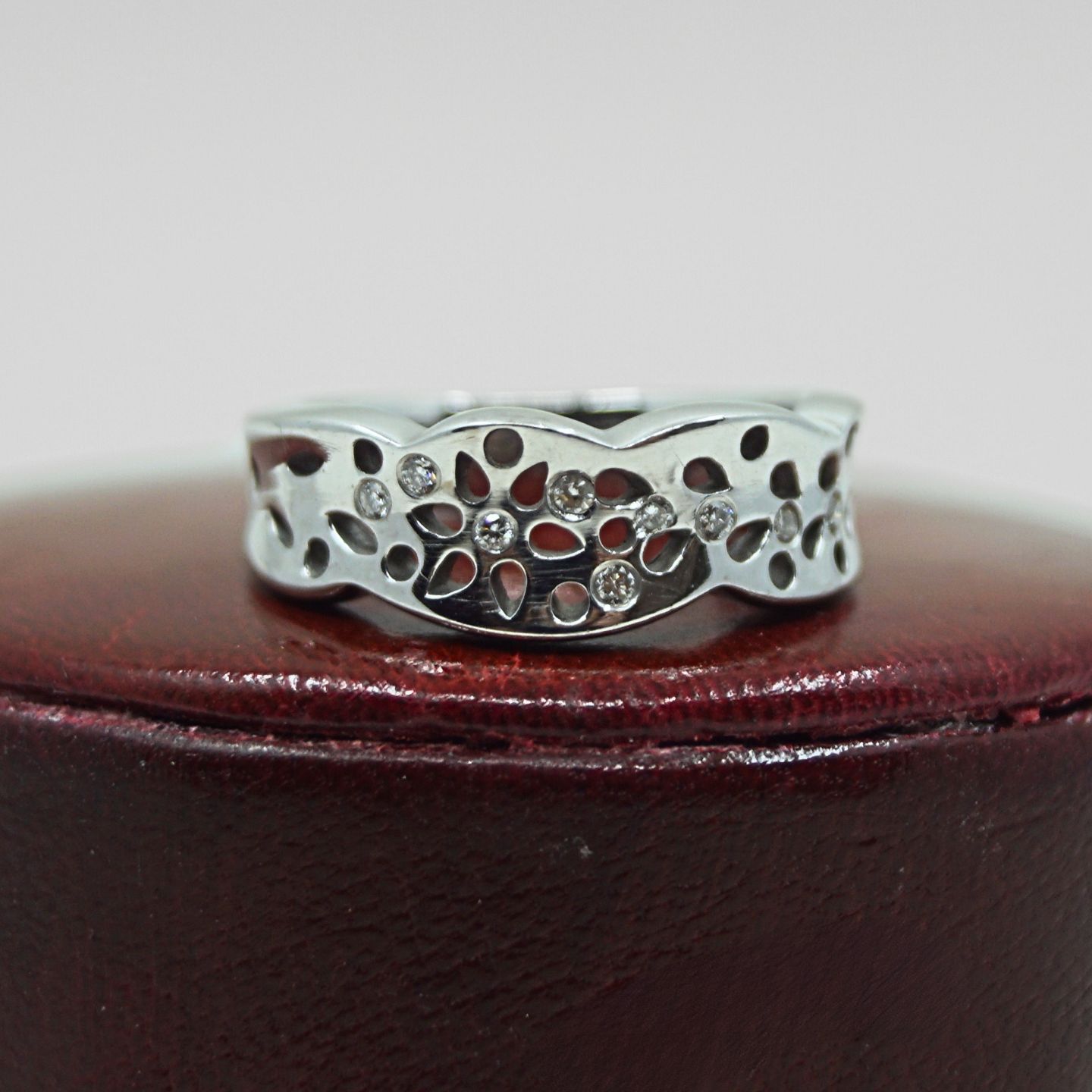 Charlotte Lynggaard for Ole Lynggaard; blonde ring med 9 brillantslebene diamanter, i 18 kt. hvidguld. Ring str. 49.