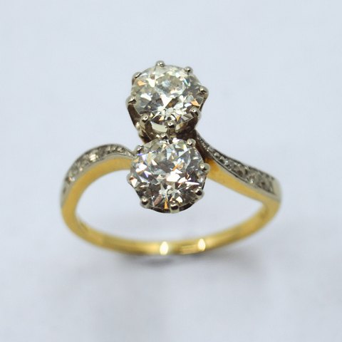 Diamantring i 18 kt. guld og hvidguld med to store brillanter, i alt ca. 1,83 ct. Farve: Top Crystal (I) Klarhed: VS - SI. Ring str. 50.