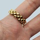 Leddelt ring af 18 kt. guld prydet med en cabochon sleben safir samt 15 små diamanter. Ringen er leddelt, dvs. "blød" i ringskinnen, når man ikke har den på.