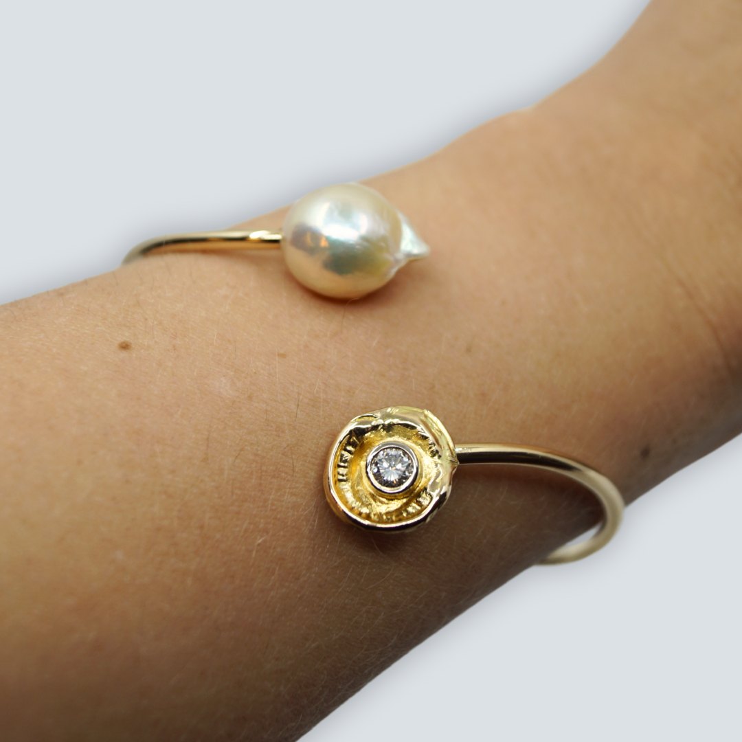Hans Poulsen; Armring i 14 kt. guld med diamant og perle