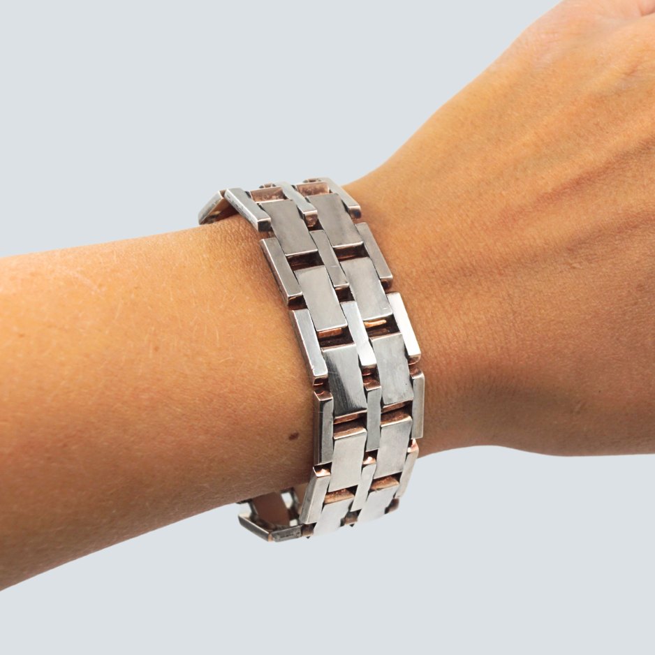 A. Michelsen; Blokarmbånd af sterlingsølv. Ca. fra 1970.