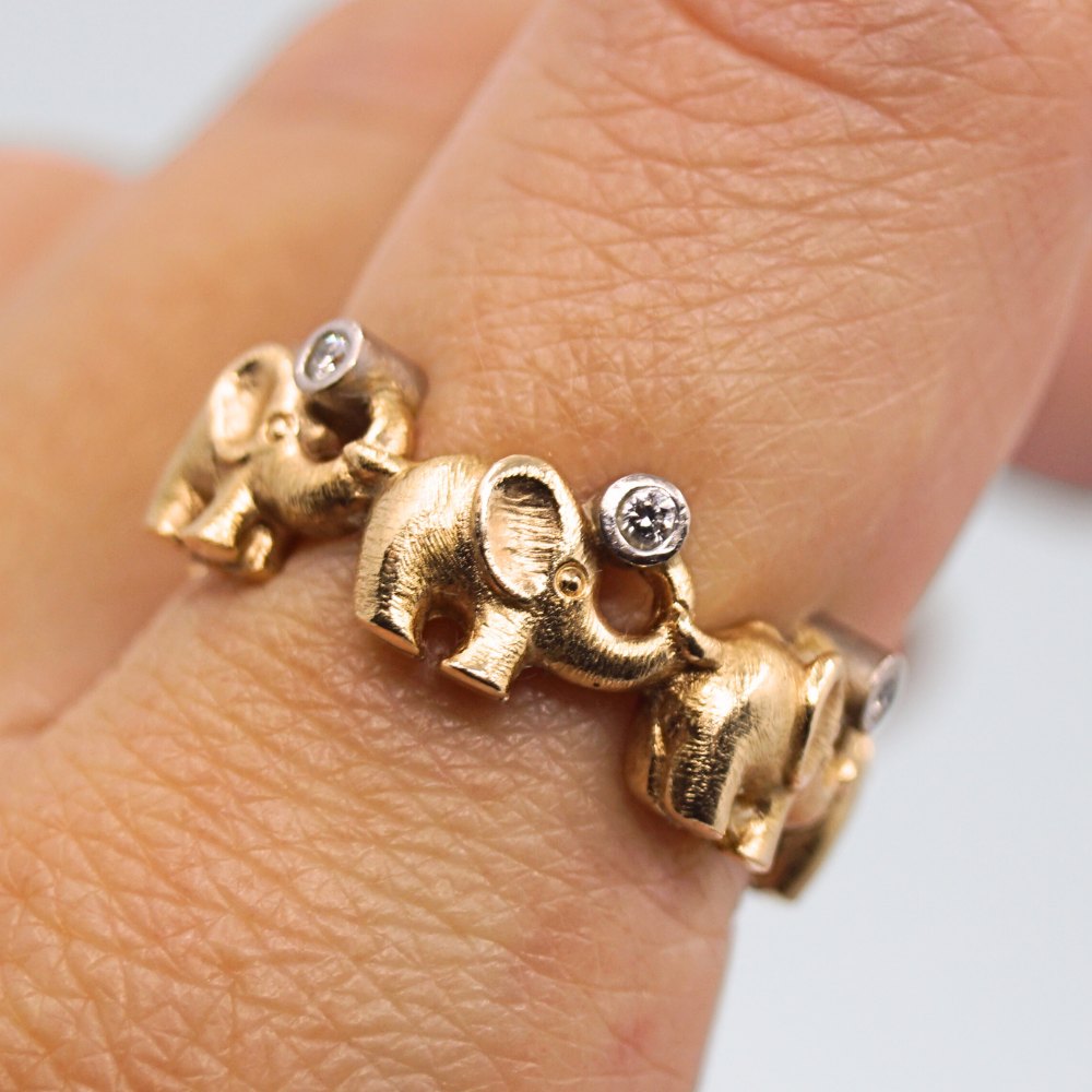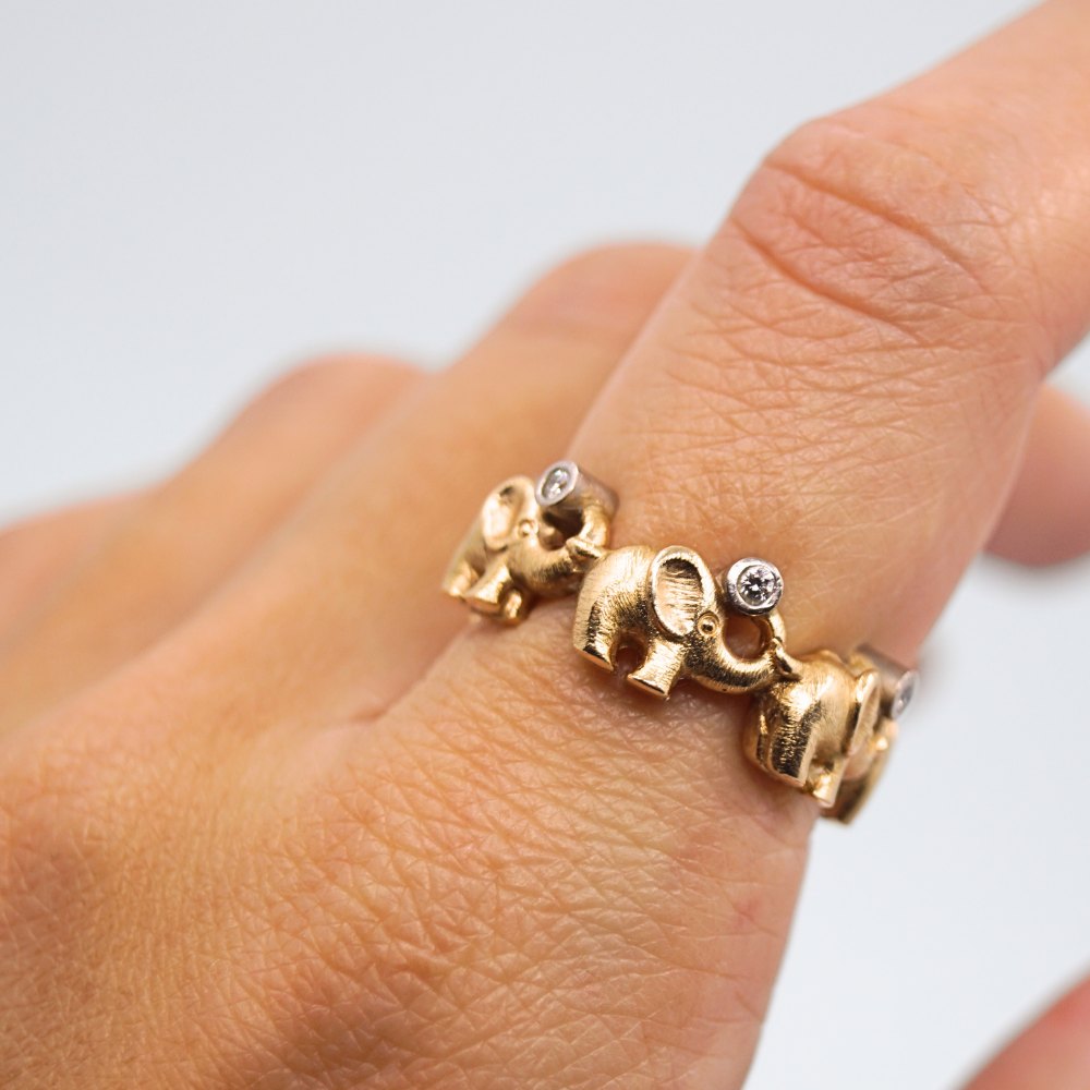 Ole Lynggaard; Elefantring i 14 kt. guld med diamanter