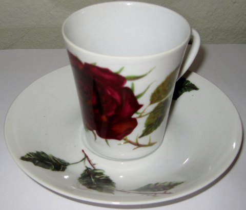 Arabia Finland Cup and saucer with Red Rose. Measures 7,7cm tall. In perfekt condition. We have 14 sets in stock.