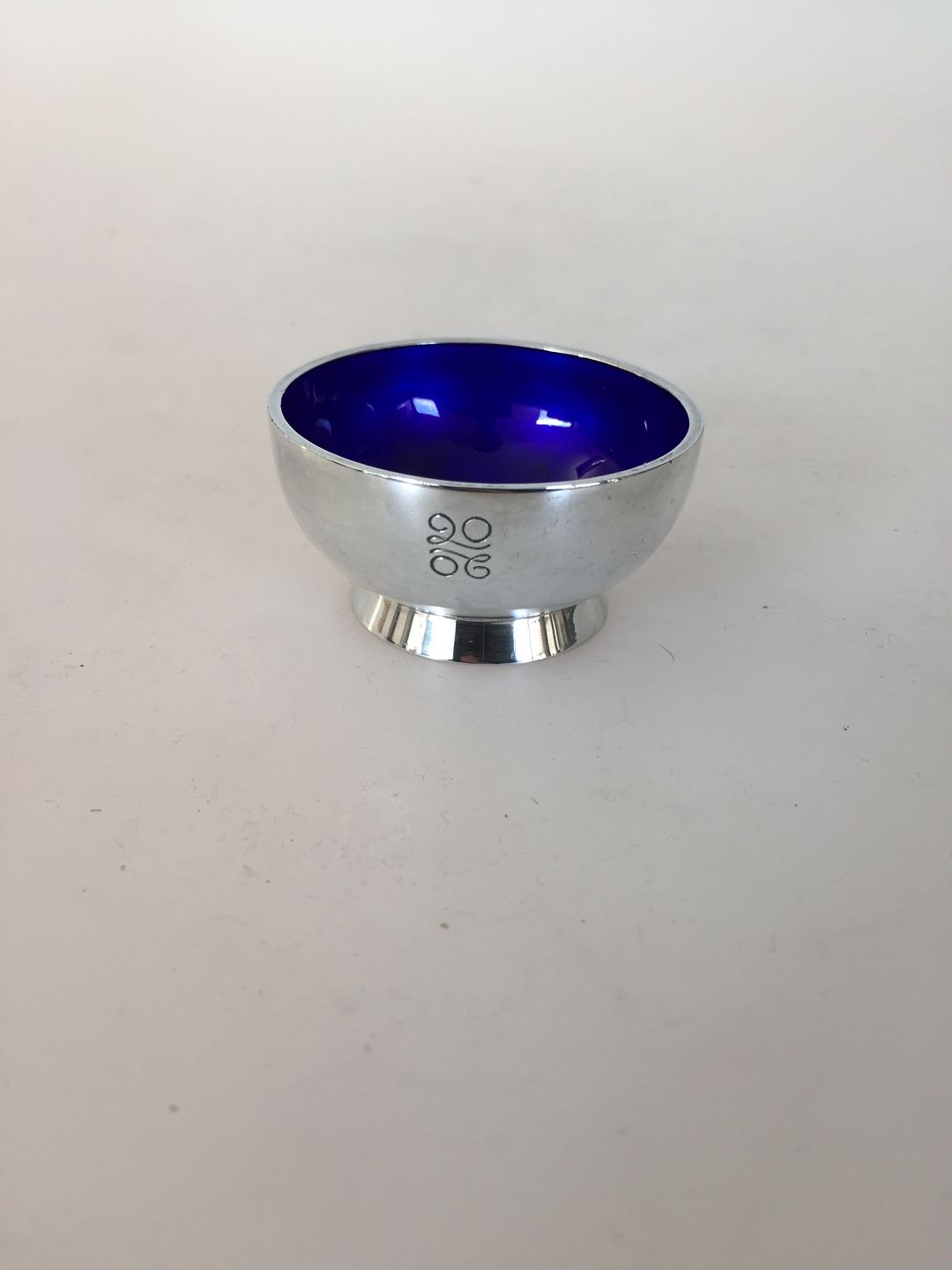 Mogens Bjorn-Andersen small dish with blue Enamal work Birkerod. Measures 5,5cm dia and 3cm high. In good condition, a little scrop on the rim and a monogram/decoration on the side.