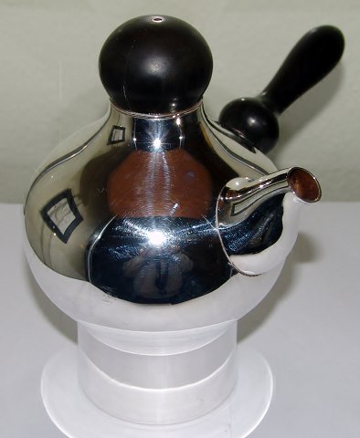 Hans Hansen Moderne Chocolade Kande i Sterling Sølv. Udført af Karl Gustav Hansen?. Mærket med Anno 1973, Hans Hansen, Sterling, Denmark, 925s og 544. Designet er ikke bogført i bogen om Karl Gustav Hansen, så ved ikke om den er designet af ham, men lignet noget han kunne have lavet. Måler 16,5cm høj og 20cm bred med håndtag. Fremstår i god brugt stand uden buler.