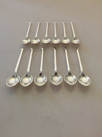Hans Hansen 12 coffee spoons in Sterling Silver designed by Karl Gustav Hansen. Measures 10,4cm and are in really good condition. Comes with the original box.