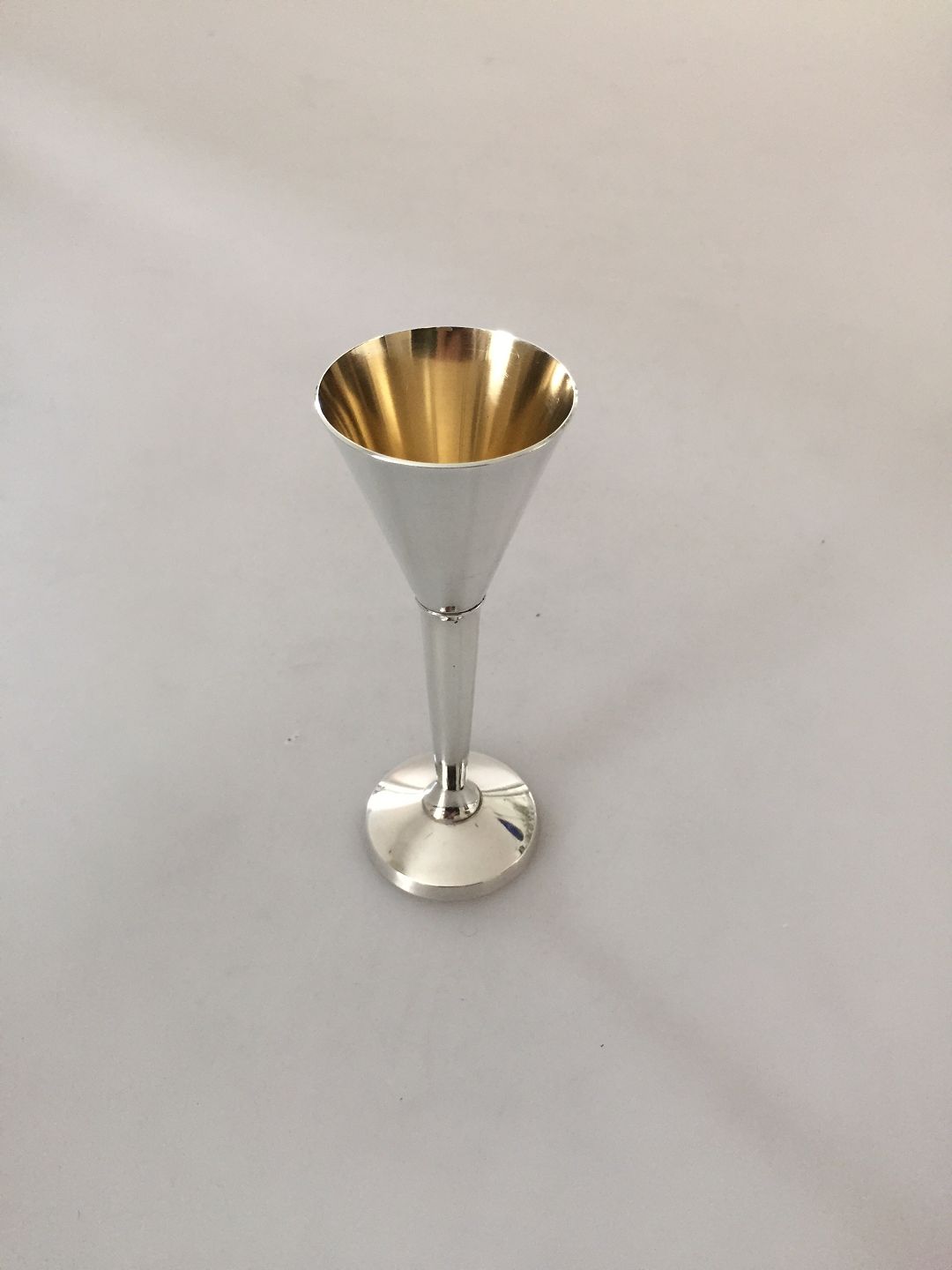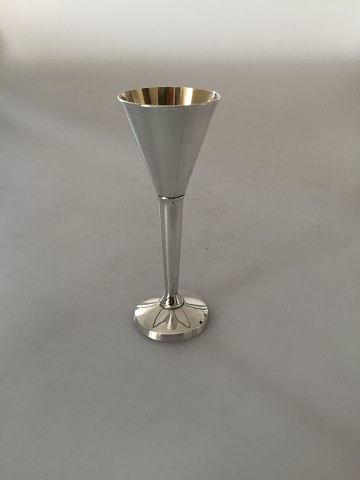 Hingelberg Snapseglas i Sterling Sølv på høj fod. Mærket. F. Hingelberg, Aarhus, 925s. Måler 12cm. I flot stand og forgyldt indvendigt.