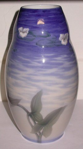 Vase i porcelæn fra Bing & Grøndahl 1915-1947. Dekoreret med åkander og det stille vand. Signeret IHL. 1. sortering. 23 cm høj.